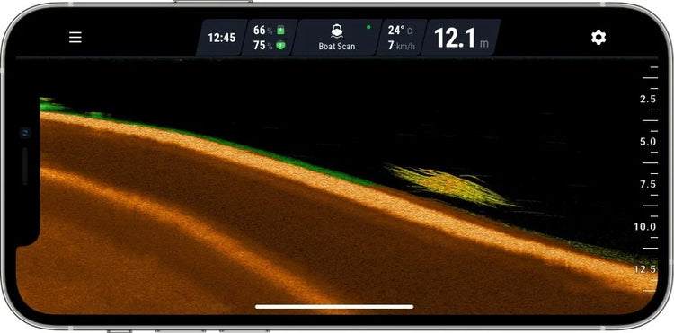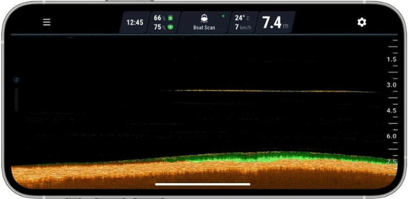 Дисплей эхолота покажет вам, насколько твёрд объект, используя цвет и яркость: чем ярче цвет, тем сильнее сигнал и, следовательно, тем твёрже объект. Это особенно важно при сканировании дна.