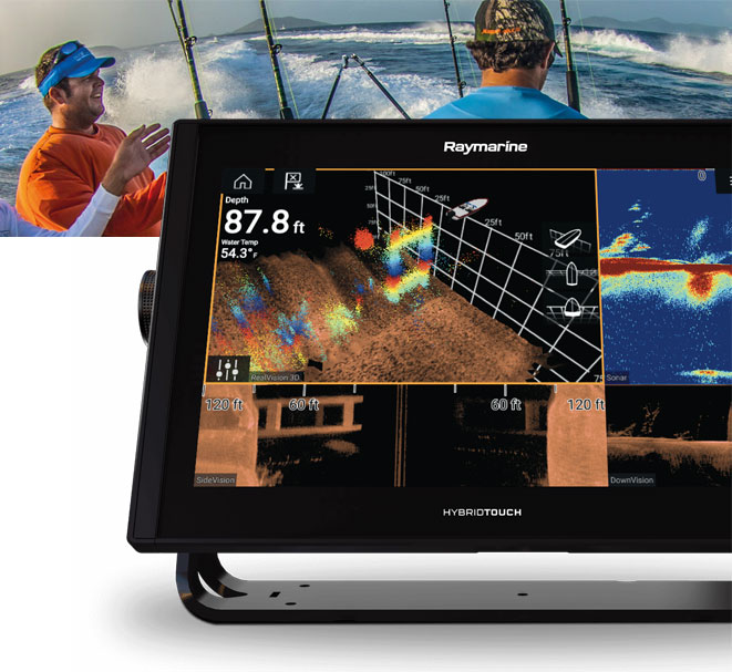 Axiom Pro совместим с эхолотами Raymarine CP470 и CP570 Professional CHIRP. Наслаждайтесь мощным выходом сонара до 2 киловатт и двумя независимыми трансиверами на CP570.