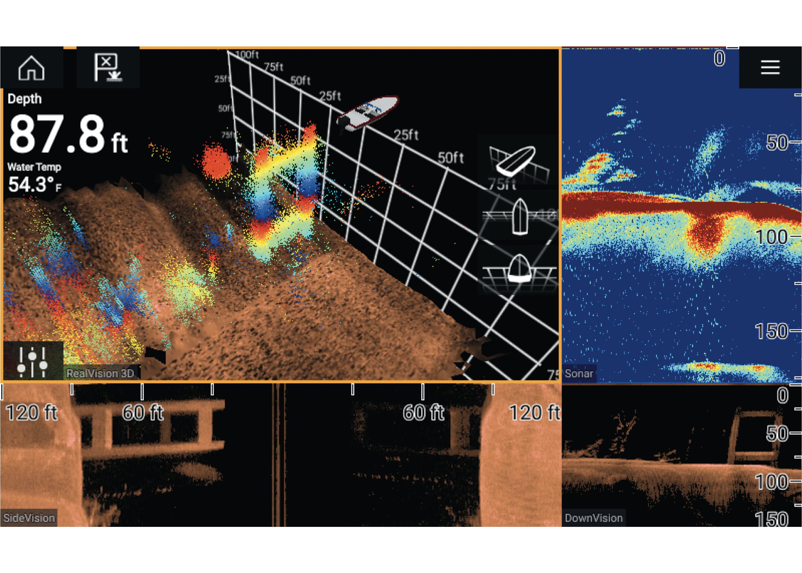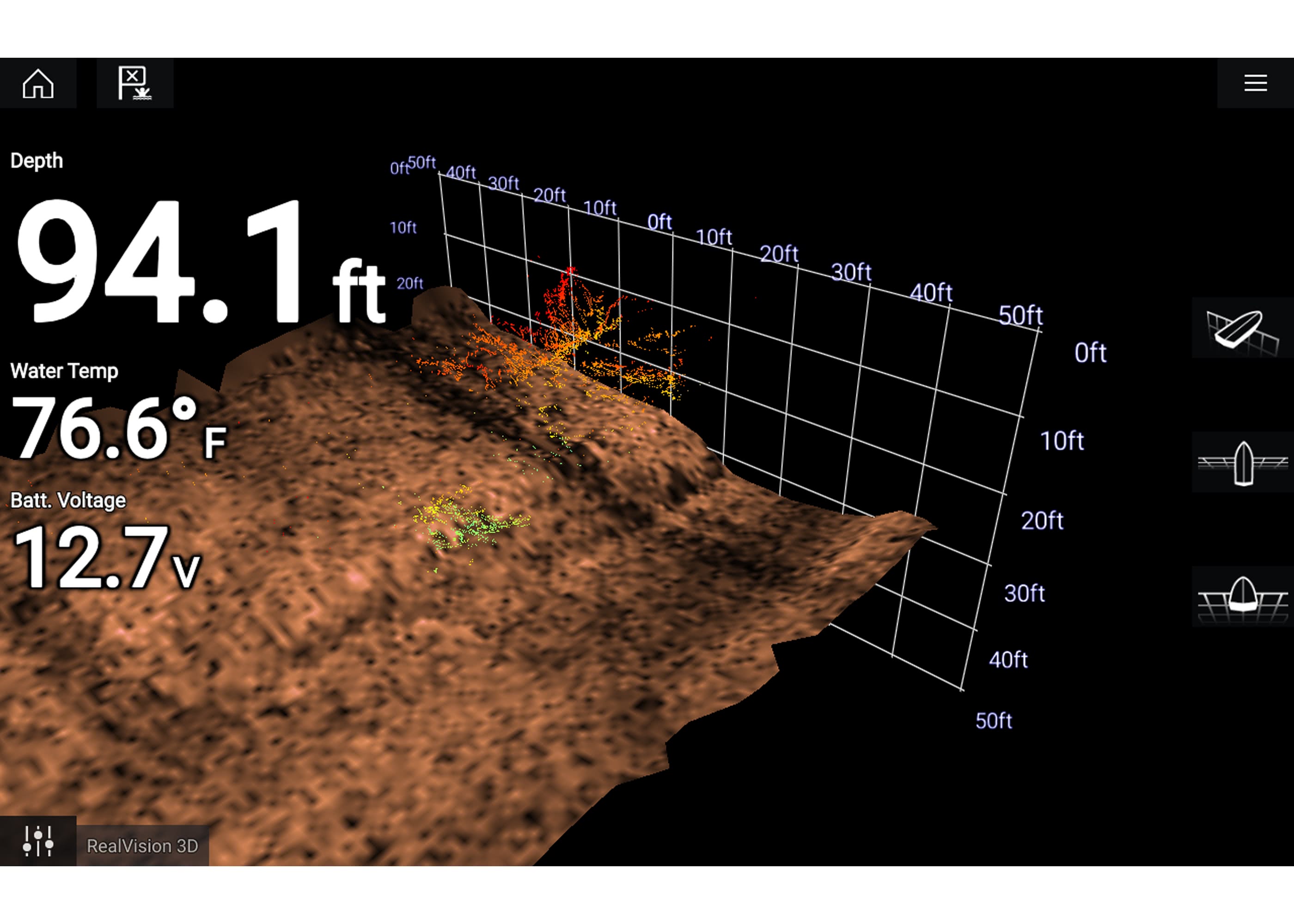 Realvision 3D™Легко определяйте структуру и находите рыбу благодаря реалистичной четкости 3D-сонара RealVision.