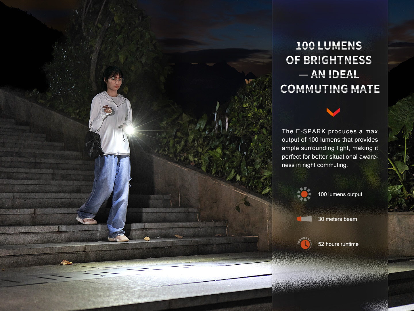 Модель Fenix E-Spark является аккумуляторным фонарём для чрезвычайных случаев. Fenix E-SPARK — перезаряжаемый прибор на брелке с возможностью Power Bank. За счёт встроенного аккумулятора ёмкостью 800 мАч он даёт наибольший световой поток 100 люменов, дальнобойность луча достигает 30 метров.